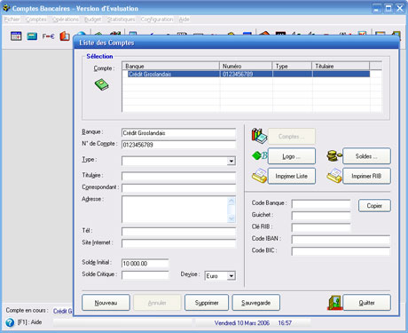 Note : Comptes Bancaires Ymsoft permet de suivre et gérer 3 comptes.